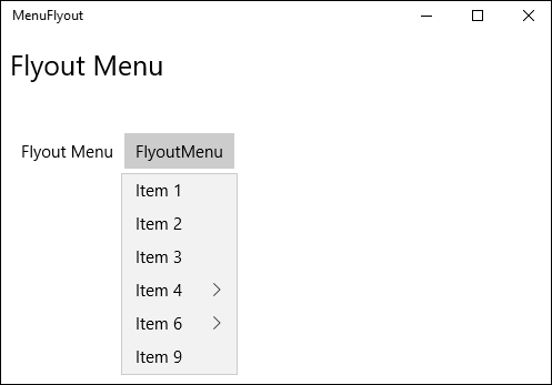 - <MenuFlyoutItem Text="Item 9" Click="MenuFlyoutItem_Click"/>