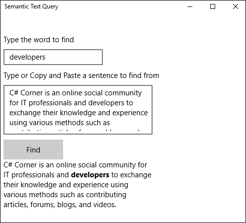 - <TextBlock Text="Type or Copy and Paste a sentence to find from " Margin="0,10,0,0" ></TextBlock>