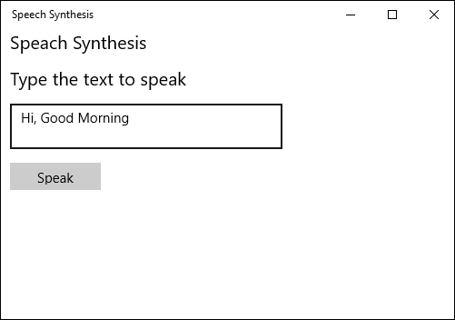 - <TextBlock Text="Type the text to speak" VerticalAlignment="Center" FontSize="20"></TextBlock>