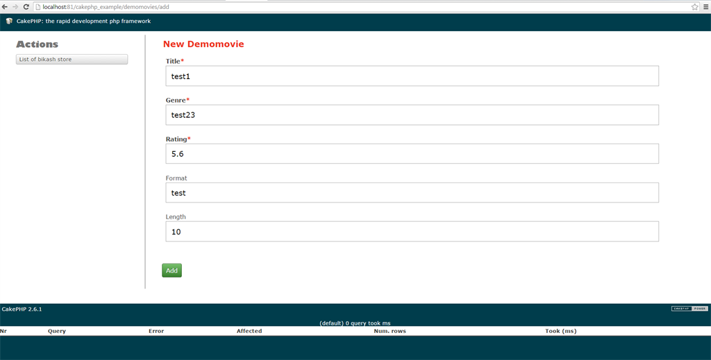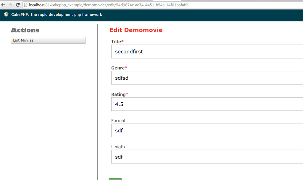 CakePHP is an open source PHP framework built around Model-View-Controller (MVC). We will begin to create a small application that will do some basic Create, Read, Update, Delete (CRUD) operations on our database.