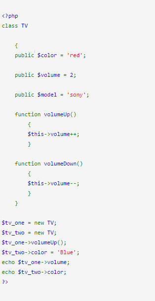 - Last step is to call the function that has been created. For calling function, you have to create objects. Here in our syntax, as you are seeing, we have created two objects and saved it in two variables as $tv_one and $tv_two.