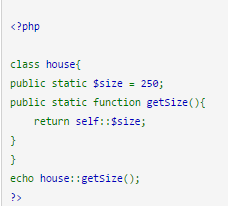 $this in function, we make use of self keyword in static. Along with the keyword we use double colon symbol (:: -