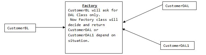 Now you can see CustomerBL is loosely-coupled with CustomerDAL. We just need to change only Factory class and rest of the classes will be unchanged.