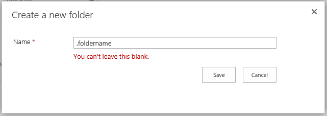 Common Invalid strings for File Names and Folder NamesThe string “_vti_” should not be used in the beginning of a file name or folder name. If we try to create a folder name with “_vti_” then it gives the following error: