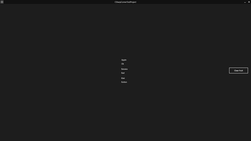 We can clear the list view by simply clicking on our Button control that will empty the ObservableCollection if it has items in it.