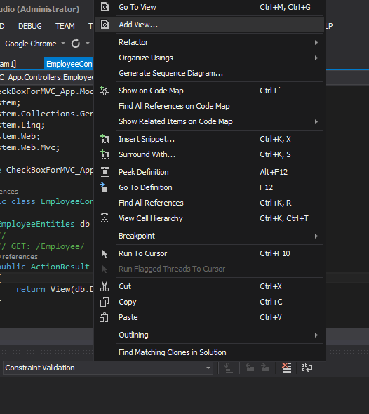 Add an Employee Controller as in Figures 3, 4 and 5.