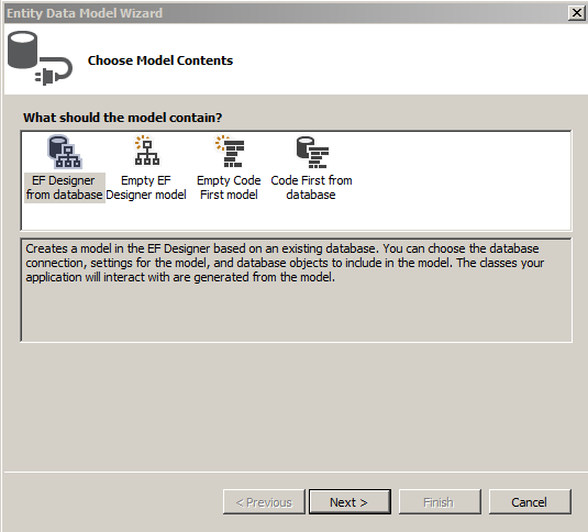 Add an ADO.NET entity data model to the project as in Figures 2 and 3.