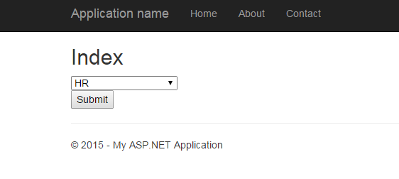 - ViewBag.List = new SelectList(objEmployeeEntities.Departments.Select(r => r.DepartmentName));
