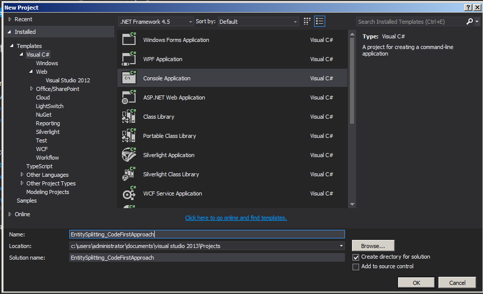 This article shows how to perform Entity Splitting and later we will also look at how to perform a select data operation using the Code First Approach.