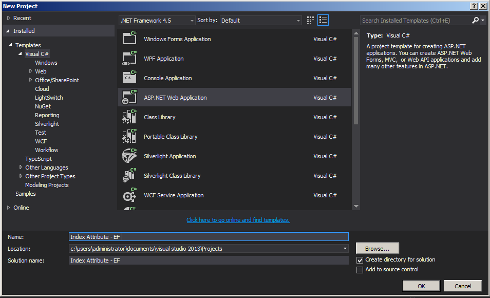 Create ASP.Net web application