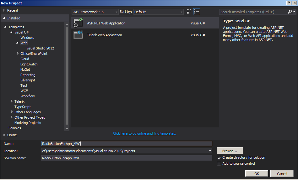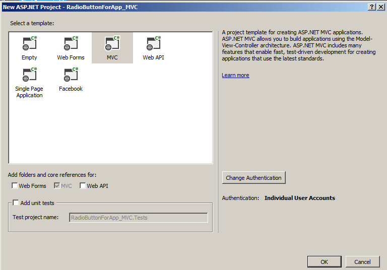Choose MVC template as in Figure 2.