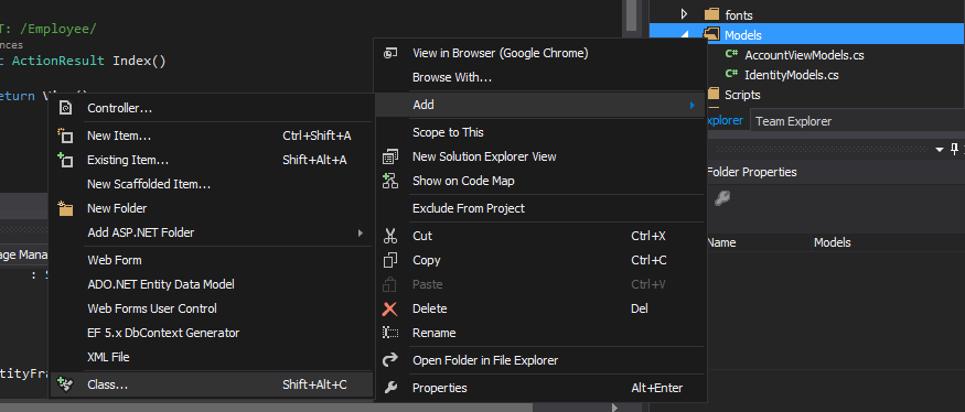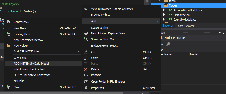 Add an Employee Controller as in Figures 3 and 4.