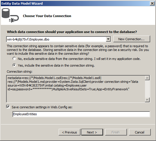 Set up the Entity Framework as in Figures 7 and 8.