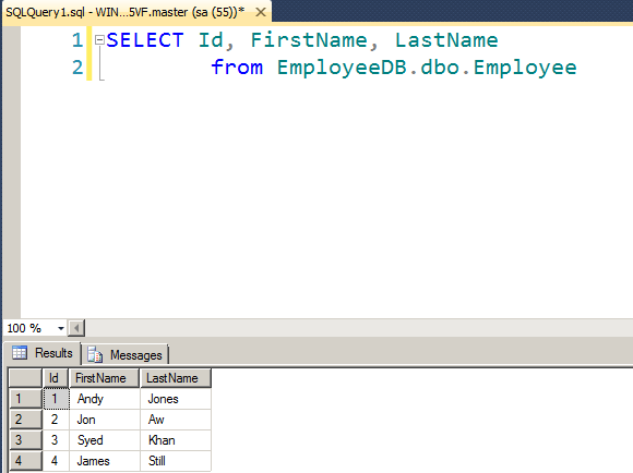 - var employees = objEmpContext.Employees.Where(p => p.FirstName == "Syed").ToList();