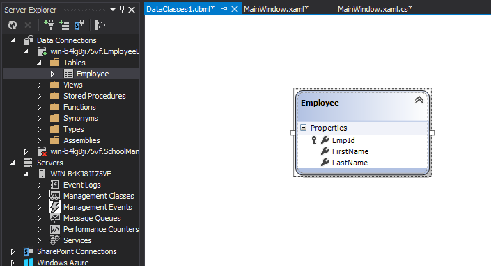 - dgEmployee.ItemsSource = objContext.Employees.ToList();