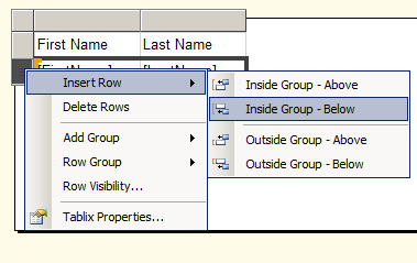 Figure 10: Insert row - inside group below