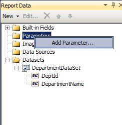 Create a parameter for the Department dataset as in Figure 11.