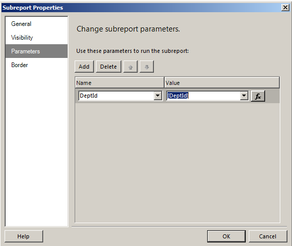 Set the sub-report parameters as in Figure 17.