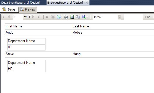 Figure 16: Department report as subreport