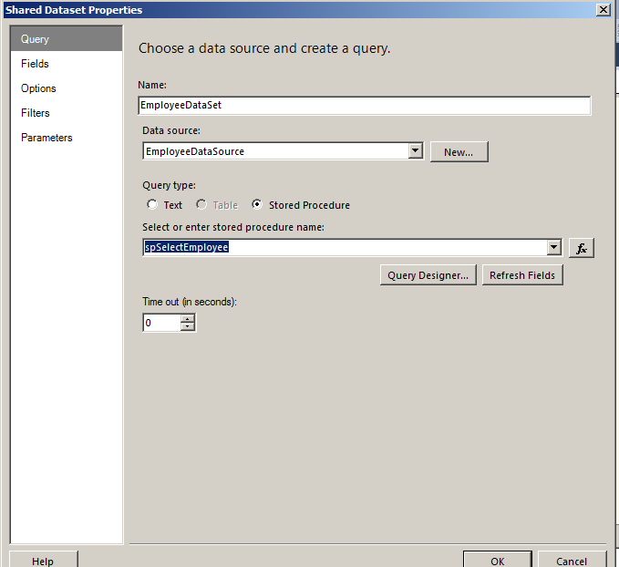 Choose a data source and create a query for employeedataset as in Figure 6.