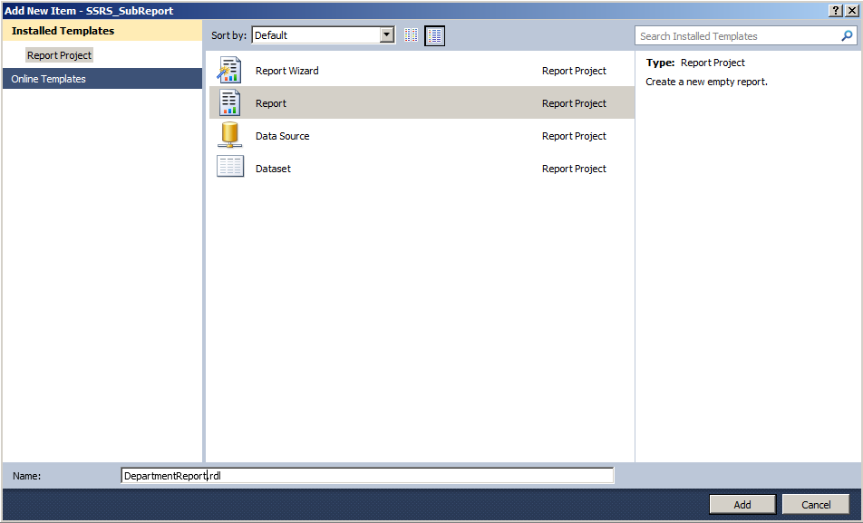 Create a Report Server project as in Figure 1.