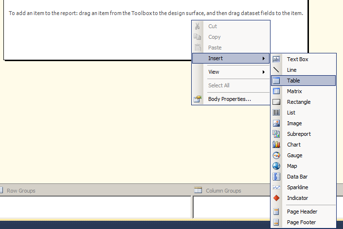Add a new report item as in Figures 2 and 3.