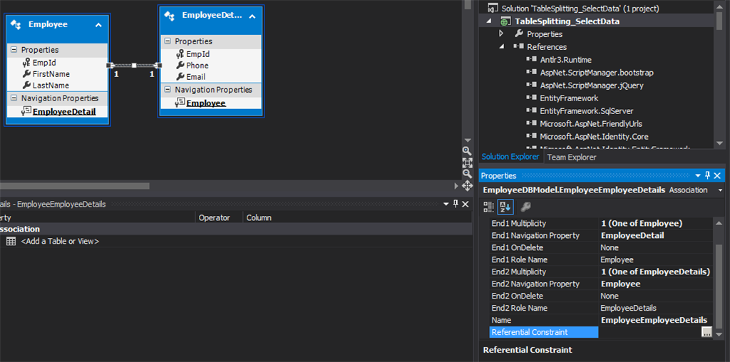 - var query = from r in objEmpEntities.Employees.Include("EmployeeDetails")