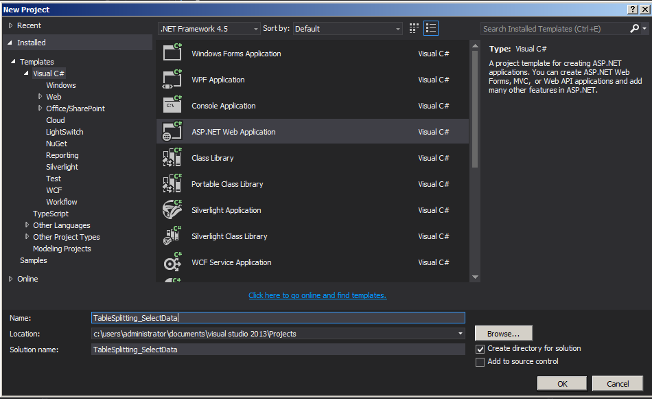 Create an ASP.Net Web Application as shown in the following screenshot.