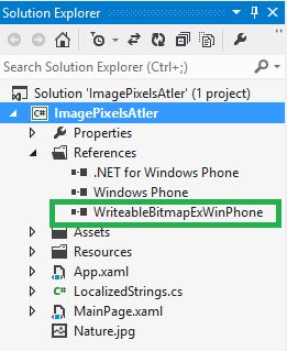 - Add the "WriteableBitmapExWinPhone" DLL from the link (or) you may get the DLL by unzipping this sample source code from the following of this article. And make sure the DLL is added to the references as in the following: