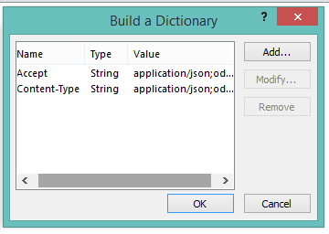 Both “Accept” and “Content-Type” entries are of the String type and they both contain the value “application/json;odata=verbose”. SharePoint REST API understands this and sets the response content type appropriately as JSON. If we don’t pass these values, the output would come as XML.
