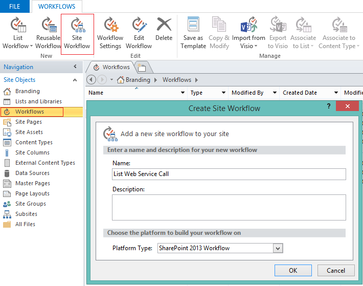 Step 1: Create Site Workflow