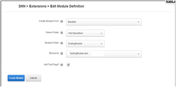- Select appropriate option to create new Custom module. Click Create Module button.