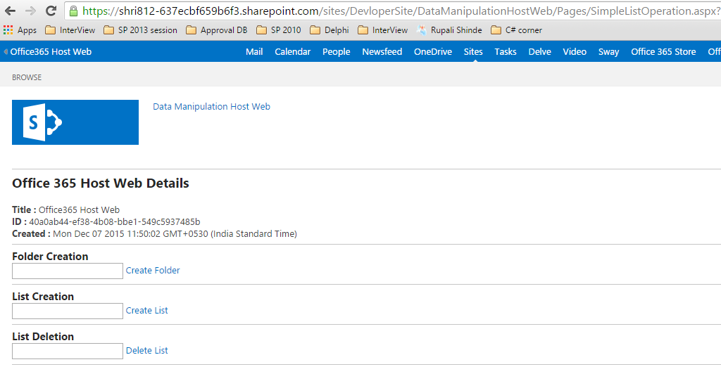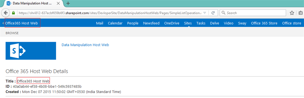 - <h2><b>Office 365 Host Web Details</b></h2>