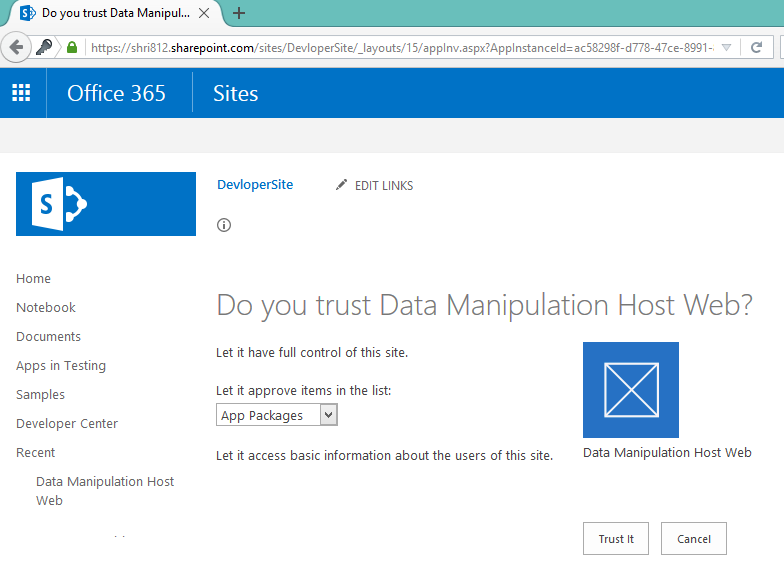 Step 5: We first need to set permission for App, so that we can communicate with site properly.