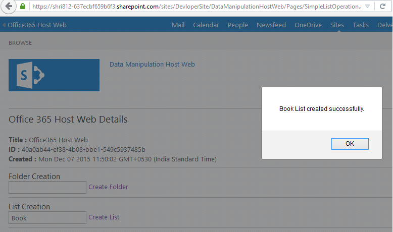 Finally list is created at host web.