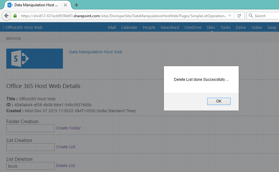 Step 11: Delete list at host web using the following code,