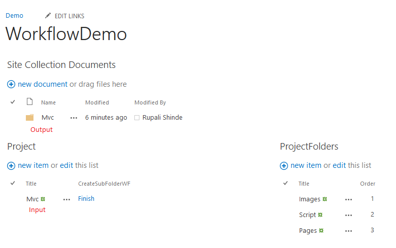 - In order to create a sub folder, we first need to fetch List data containing folder names using the following URL "http://....../sites/Demo/_api/Web/Lists/GetByTitle('ProjectFolders')/Items ".