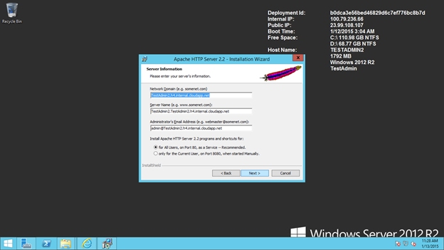 - ServerAlias localhost, testadmin2.cloudapp.net