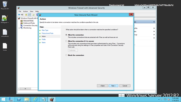 Now an inbound rule was successfully added to the inbound firewall settings.