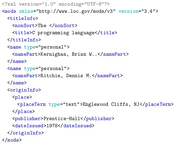 You can see that there are two kinds of information as shown in the preceding figure. Markup like <mods> and the text, or character data, personal and Kernighan, Brian W. The following diagram depicts the syntax rules to write various types of markup and text in an XML document.