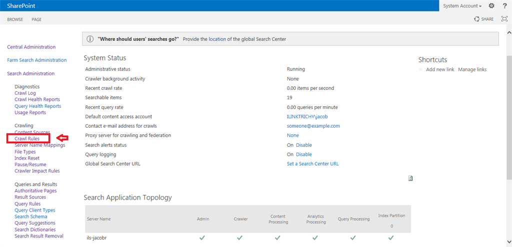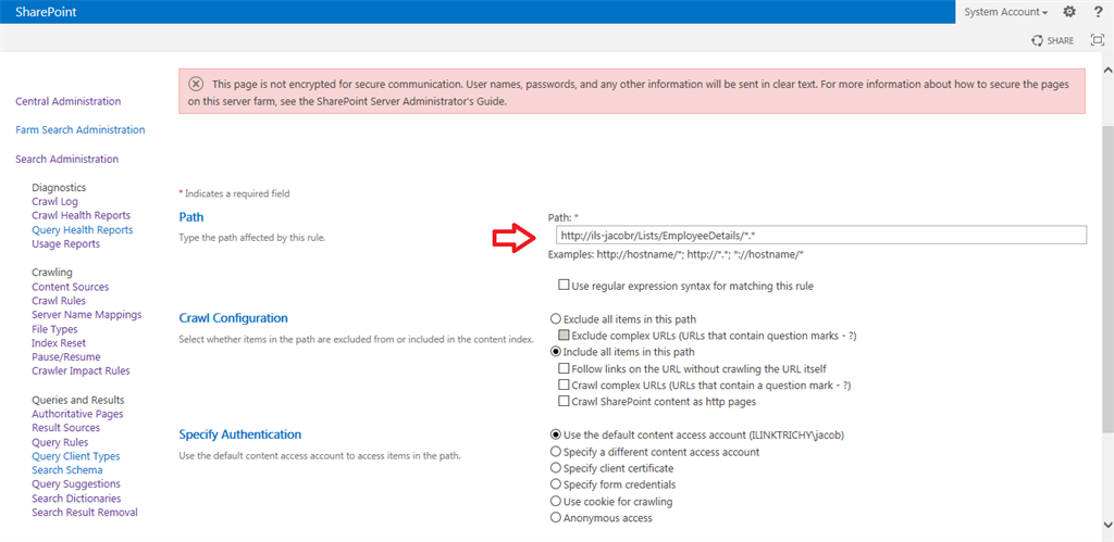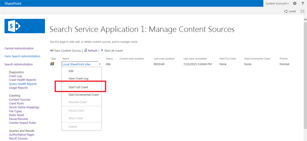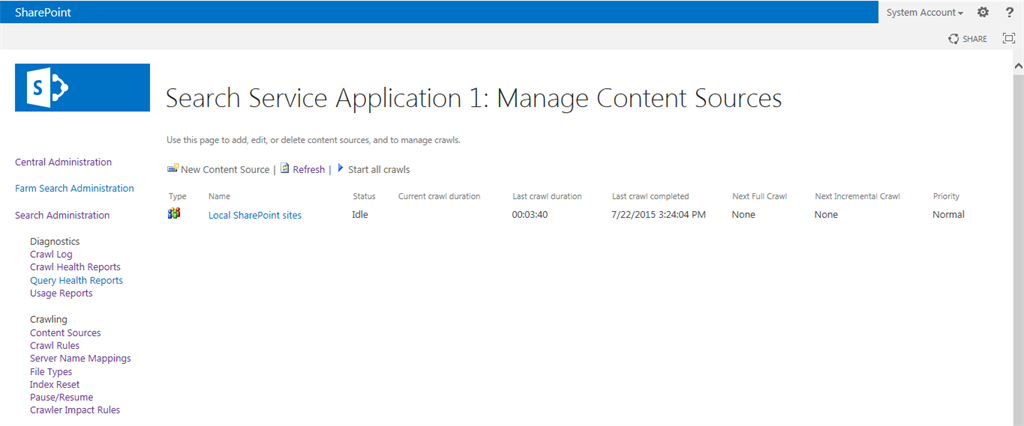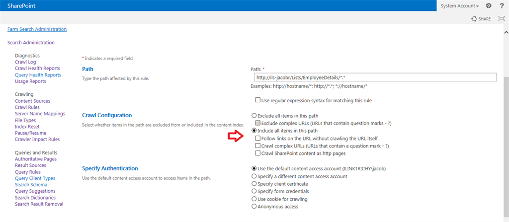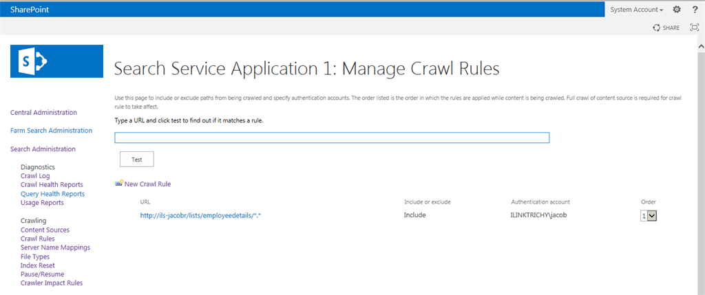 Step 1Go to SharePoint 2013 Central Administration.Click the Start menu, then click Microsoft SharePoint 2013 Products and click SharePoint 2013 Central AdministrationStep 2Click Manage Service Applications under Application Management.Step 3Click your Search Service Application.Step 4The following screen will appear.Step 5Click Crawl Rules under Crawling from the left panel.Step 6Click New Crawl Rule for including contents.Step 7Enter the path of the specific SharePoint list. Here I have crawled for the employee details list.Step 8Select the “include all items in this path” option from the crawl configuration and click the OK button.Step 9The following screen will appear.Step 10Again go to crawl rules for exclude contents and click the new crawl rule.Step 11Enter the path as in the following. Select the “Exclude all items in this path” option from the crawl configuration. Then click the OK button.Step 12The following screen will appear.Step 13Now go to the content sources.Start Full CrawlAfter a successful crawl, try some keyword search in your site collection. The search results only comes from a specific list only.SummaryIn this article we learned how to crawl the specific lists for the SharePoint 2013 search service.