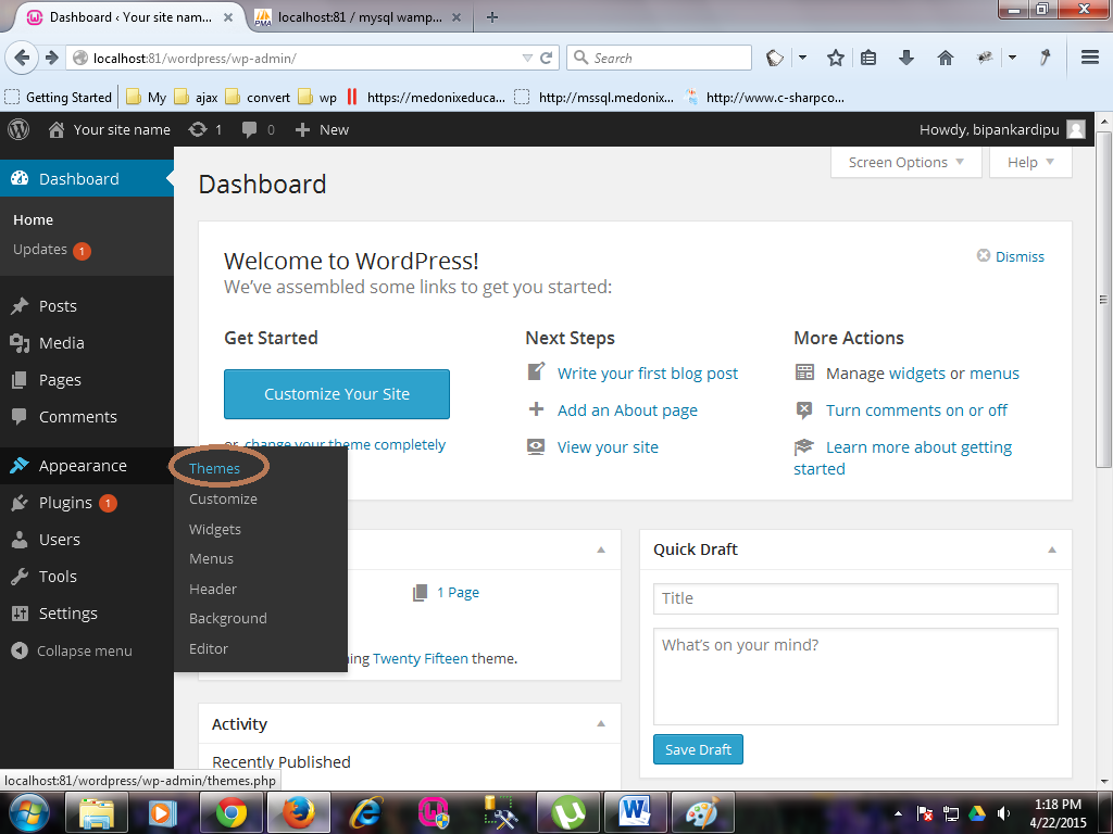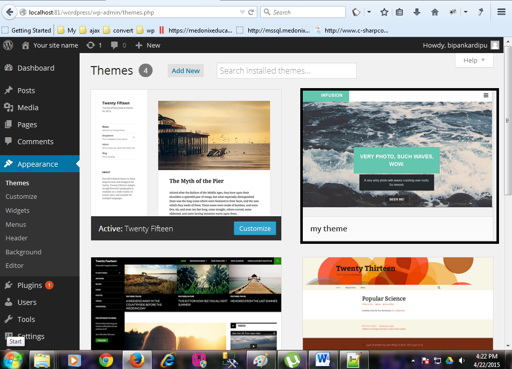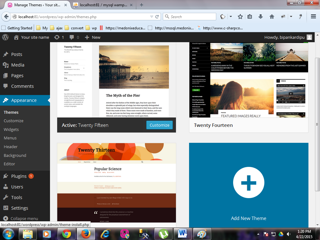 You can use these themes by clicking Active. And you can also install Add New wrodpressTheme. But we'll use a simple HTML theme to convert Wordpress.