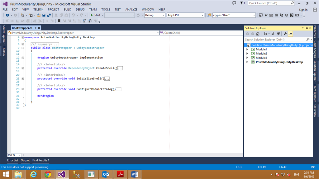 Registering Modules: Here I have registered all modules in Bootstrapper class, see the code below.