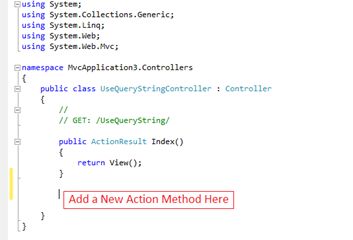 - public class UseQueryStringController : Controller