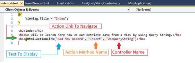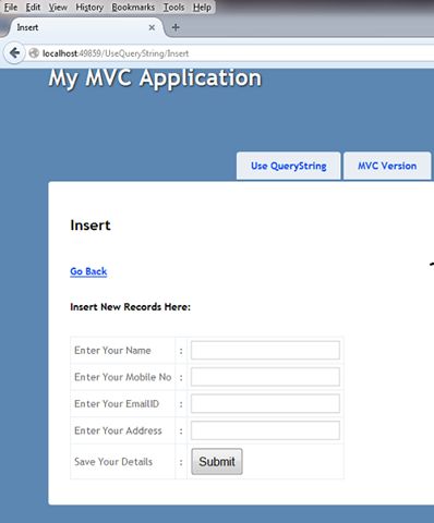 - <h6>@Html.ActionLink("Add New Rocord", "Insert", "UseQueryString")</h6>
