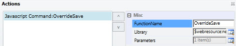 Select Mscrm.SavePrimary under Commands and click on Actions lookup to check for function name and parameter, we got this command name from the Save button commandcore property.