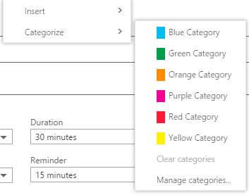 Scheduling AssistantHere, as in Outlook, will assist you to create an event as we can see from the screen below. Mainly it will have fewer but important factors that are only required to schedule an event.AppsYou can click on Apps and pick up some templates from your SharePoint Store.InsertHere you can insert attachments from the OneDrives or Pictures.CategorizeHere you can categorize your event with the respective colors or create a new one.This article has provided wonderful collaboration for Outlook with SharePoint and indeed it is a user-friendly approach for every one of us. Keep Learning.Cheers