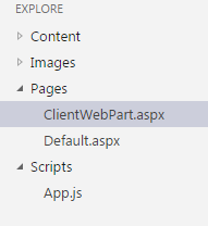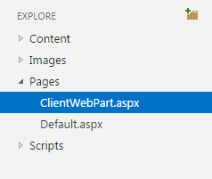 - We will add a button and a function to initiate the event. Click on the “ClientWebPart.aspx” on the left side.