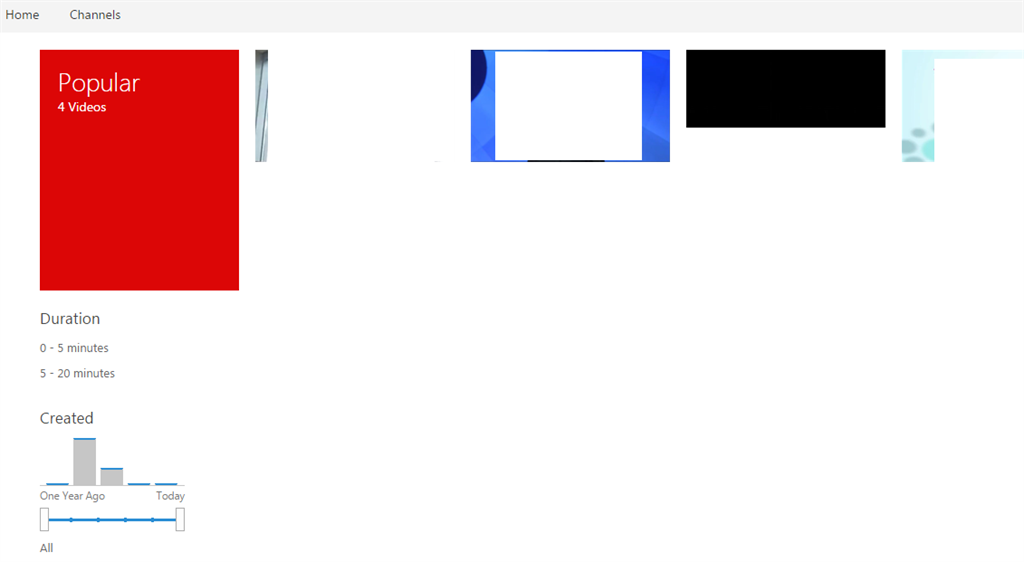- When we see the category we will be able to see all the videos in the center and a left navigation with a quick search on the Duration and the file uploaded date, in other words the created date.