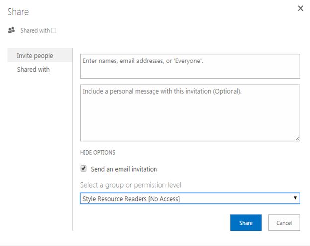 Sharing is a way to assign permissions to users by just clicking on “Share” present on the top of all the pages of the site.